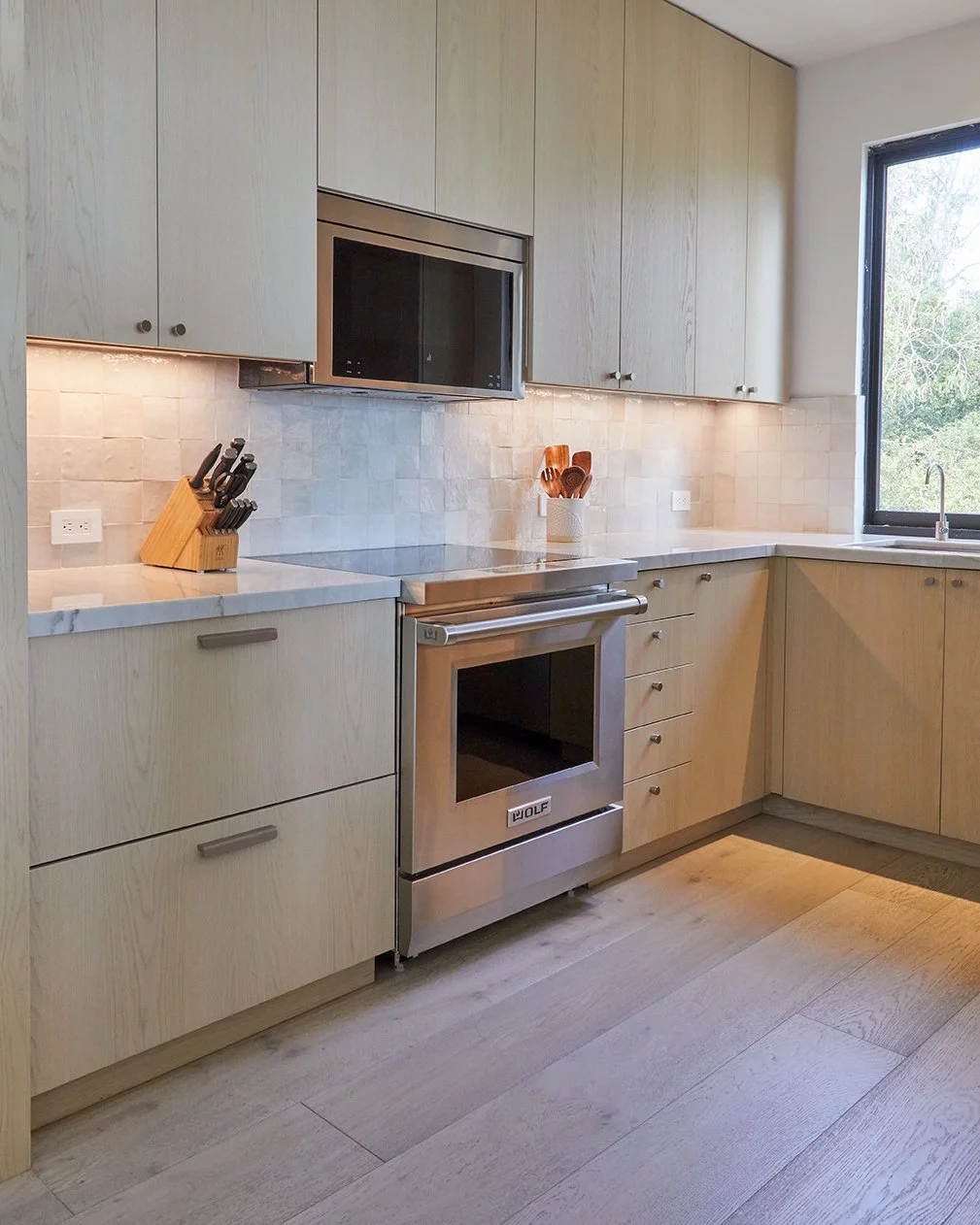 The renovation centered around a complete kitchen transformation, including all new cabinetry and a more refined, functional layout. Updated flooring, light fixtures, and entirely new furnishings brought a renewed sense of cohesion and comfort to the home. Each selection was made to complement the client’s existing artwork, allowing it to shine within a lighter, more contemporary coastal setting.